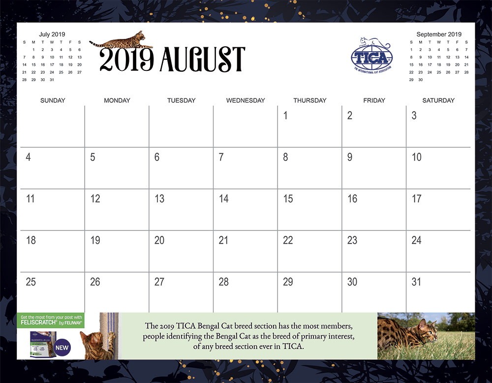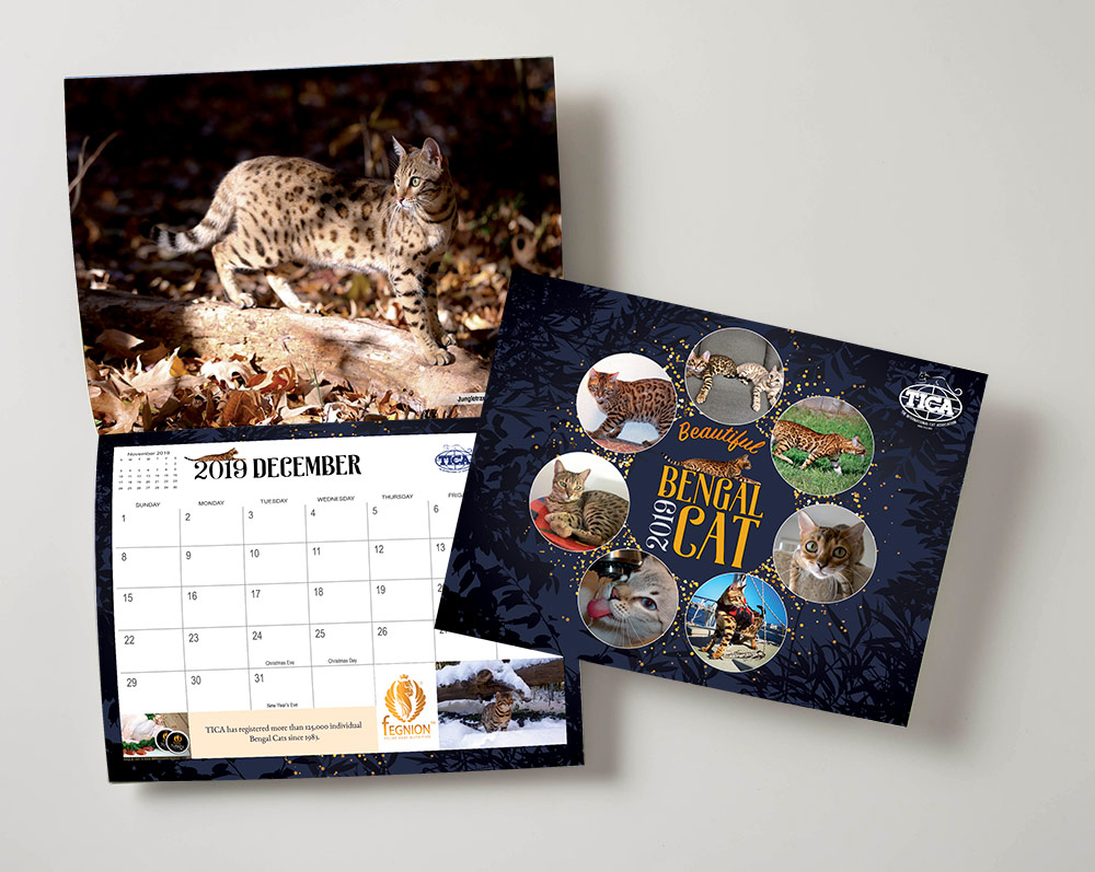 Graphic design and layout for the annual TICA’s Bengal cat breed calendar.